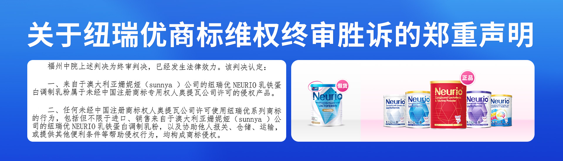 Neurio (中文品牌名:紐瑞優(yōu))意即 “New for You(創(chuàng)新為你)” ,自2011年品牌創(chuàng)建以來, 秉承“創(chuàng)新為你·健康至上” 的理念,讓健康伴隨生活。 紐瑞優(yōu)Neurio產品從國際引入中國,快速落地生根,并在中國實現品牌騰飛!紐瑞優(yōu)持續(xù)努力將自己打造為一個國際知名品牌,前期主要以澳新產品為主,現已轉型為以國際產品為主,并堅定不移深耕中國本土化產品,擴大國際營銷, 實現從國際引進中國,再從中國走向國際,讓紐瑞優(yōu)品牌再上一個新的臺階! 自2015年,紐瑞優(yōu)團隊經過不懈努力成功研發(fā)紐瑞優(yōu)乳鐵蛋白系列調制乳粉,奉獻給熱愛健康的人們。 紐瑞優(yōu)團隊專注大健康理念,包括孕產婦與胎兒健康,兒童青少年的健康成長以及中老年人的健康營養(yǎng)需求,不斷推陳出新,為大健康理念貢獻自己的一份力量。 紐瑞優(yōu)永不止步,不斷探索和追尋更新的健康理念,不斷自我超越追求更高的目標, 不斷努力研發(fā)生產符合市場需求的質優(yōu)價美產品,滿足人們對健康和高品質生活的追求!